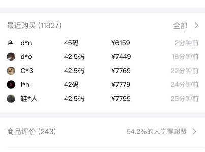 実際に、この30分以内で5足は売れているようです。ただ値段が5679元で売れたのは一つもなく、かつバラバラなのにお気づきでしょうか?