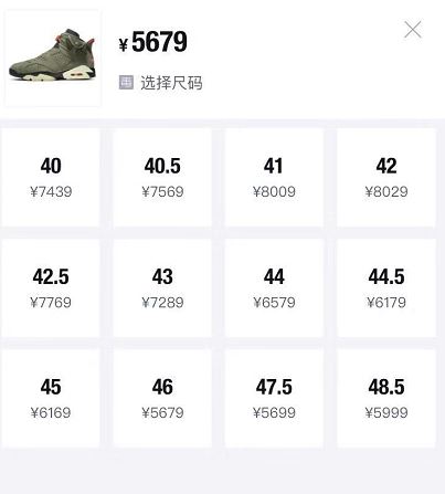 5679元というのは最低の価格であって、サイズによって値段がバラバラなのですね。サイズの需給バランスによって値段がかわりますし、タイミングによっても値段がどんどん変わっていきます。足のサイズが30cmを超えている人は自分で買うのならお得ですね(笑)