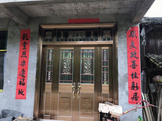 しかも門の両側にある対联(対の赤い祝いの言葉)は