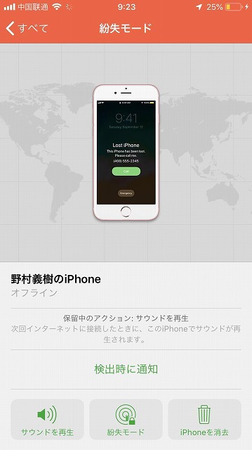 「紛失モード」をオンにする